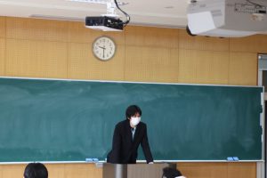 4月から着任された上田清人先生です。よろしくお願いします。 新型コロナウィルスへの様々な対策を行い、3密を作らないように工夫し授業も行われています。